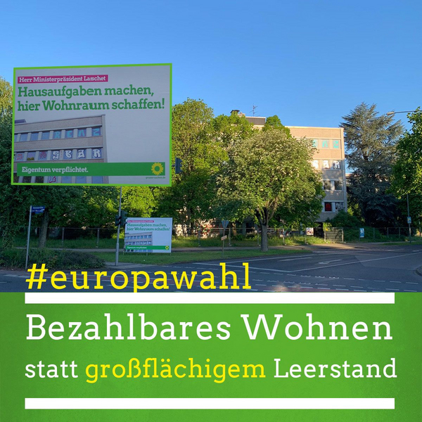 „Nicht nur private Bauherren lassen Grundstücke und Gebäude in Aachen leer stehen. Auch das Land NRW hat ungenutzte Flächen. Beispielhaft für den Leerstand von landeseigenen Gebäuden steht dieser 3.000 Quadratmeter große Bau an der Adenauerallee. Hier war bis 2013 das Landesstraßenbauamt untergebracht. Seitdem verfällt die Ruine. Trotz massiver Wohnungsnot in Aachen wird das Gebäude bisher immer noch nicht vorrangig an die Stadt verkauft. Wir finden, das sollte Herr Laschet zur Chefsache erklären und endlich dafür sorgen, dass das Grundstück ins Eigentum der Stadt übergeht. So schafft man bezahlbaren Wohnraum in Aachen und in NRW.”