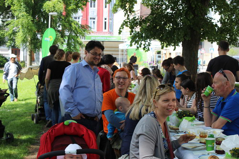 Dabei waren es eben nicht nur die „Immergrünen“, sprich politisch engagierte Menschen, sondern eine bunte Mischung aus Jung und Alt, mit und ohne Kinder, zufällige Spaziergänger und etliche Anwohnerinnen und Anwohner, die die Gelegenheit nutzten, um mit der Nachbarschaft in Kontakt zu kommen.