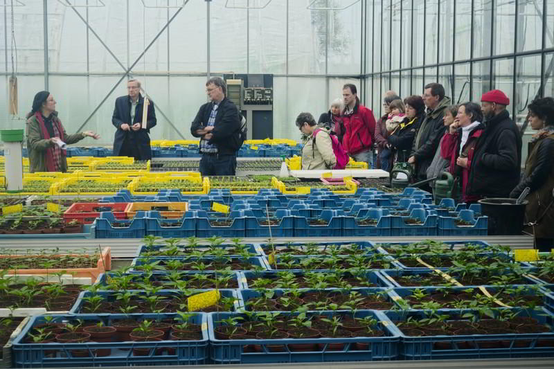 „Das ist der Ursprung unseres Biohofs“, betonte Frau Plessmann, die fachliche Leiterin der Ausbildung und Weiterentwicklung des Bio-Anbaus. Die körperliche Arbeit mit der Natur, das Anpflanzen und die Pflege der Beete hat schon vielen Menschen neue Stärke und Lebenskraft zurückgegeben. Seit geraumer Zeit wurde deswegen auch die Verpachtung von kleinen Flächen in den Gewächshäusern und den freuen Beeten ausgeweitet. In diesem Jahr werden es mehr als 100 KleinpächterInnen sein, die – oft mit ihren Kindern und Familien – hier eigene gesunde Nahrungsmittel selber erzeugen.