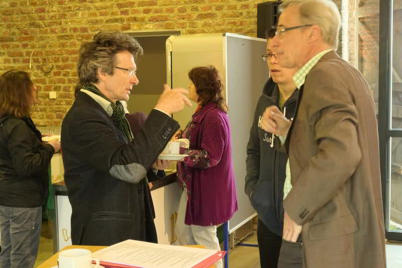 Ein Vertreter der Vereinigung „Solidarische Landwirtschaft“ aus Vaals/Gut Wegscheid beschrieb als spontaner Gast das Geschäftsmodell, mit dem auch kleinere Landwirte überleben können. Mit einer genossenschaftsähnlichen Vereinigung stellen die KundInnen einen jährlich fälligen Betrag zur Verfügung. Regionale Vermarktung, Förderung der Biolebensmittel, hohe Qualität – ein Modell, dass auch die anwesenden InteressentInnen beeindruckte.