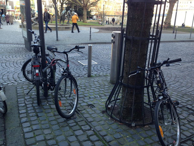 Also dreht man noch eine Runde und – erfahrungsgemäß – noch eine Runde und noch eine. In diesem Jahr wird auf diese Weise wohl kein einziger neuer Bügel in der Straße aufgestellt, obwohl dort notorischer Mangel herrscht. Eine stets voll belegte – leider nur temporäre –Radabstellanlage mit 32 Plätzen war während der Adventszeit jedenfalls dauerhaft ausgebucht.