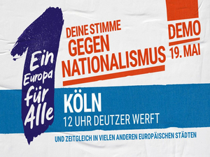 Ein Europa für Alle: Deine Stimme gegen Nationalismus!“ - mit diesem Motto werden wir am Sonntag den 19. Mai auf die Straße gehen, gemeinsam mit tausenden Menschen in vielen europäischen Städten: