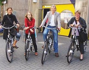 Aufsichtsrat Dr. Thomas Griese und Fachbereichsleiterin Katrin Bauermeister übernahmen nun gemeinsam mit der Umweltdezernentin Gisela Nacken die ersten Exemplare aus den Händen von Christoph Gier, über dessen Fachgeschäft VELO die Anschaffung erfolgte.