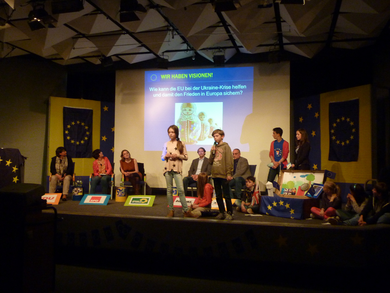 Die Unterstufen-SchülerInnen legten mit ihren Fragen, unter anderem nach der Euro-Zone, der EU und dem „Europa der Regionen“, die Messlatte hoch: „Warum hat Großbritannien keinen Euro?“ hieß es da etwa. Die Mittelstufe legte nicht weniger niveauvoll nach, z.B. mit der Frage nach der Rolle der EU bei der Ukraine-Krise.