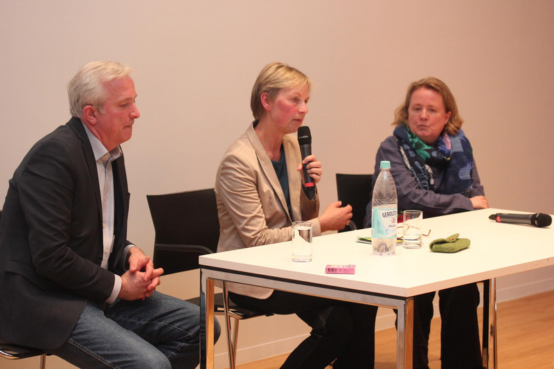 Mit den Gästen Prof. Dr. Anna Van Mikecz, Biologin und Neurowissenschaftlerin an der Uni Düsseldorf und Norvich Rüße, umweltpolitischer Sprecher der GRÜNEN im Landtag und selbst Bio-Landwirt diskutierte ein interessiertes Publikum über notwendige Maßnahmen und eine andere Landwirtschaft. Die Veranstaltung fand statt im Rahmen der Umweltkampagne „Save the Bees“.
