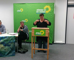 Im Anschluss an Oliver Krischers Vortrag stellte Katrin Feldmann, OV-Sprecherin, den Antrag zur Einwanderungspolitik auf dem Parteitag im November vor, auf den eine konstruktive Diskussion zum Asylkompromiss folgte. Hauptkritikpunkt der GRÜNEN Jugend war, dass u.a. die im Kompromiss beschlossene „Ausweitung von sicheren Herkunftsländern“ eine Diskriminierung von Roma und Wirtschaftsflüchtlingen bedeute.