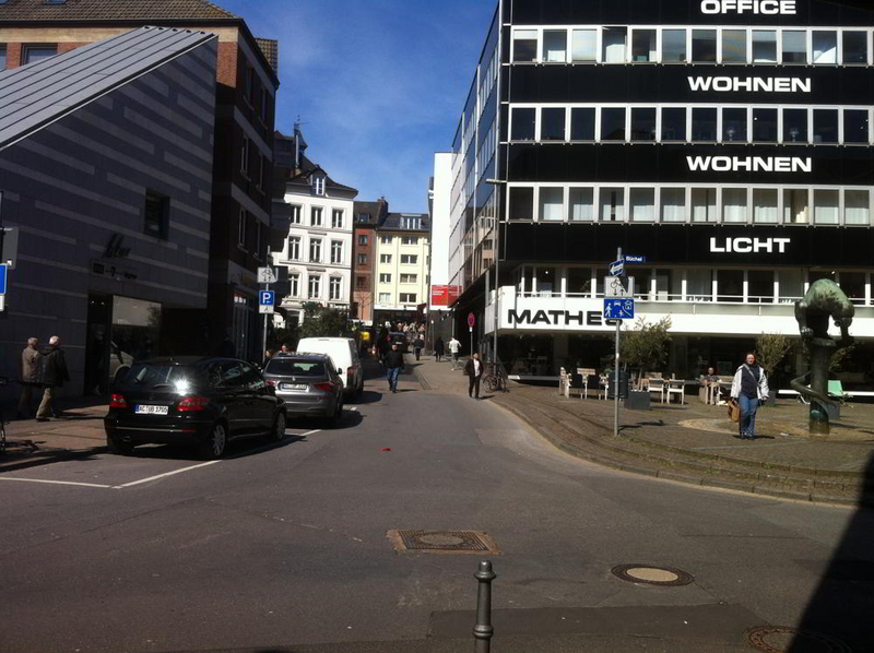 Neben dem Büchel selbst beträfe die Ausweisung als Fußgängerzone die Mefferdatis-, Nikolaus- und Buchkremerstraße sowie die Kleinköln- und Minoritenstraße (siehe farbige Markierungen im Plan).