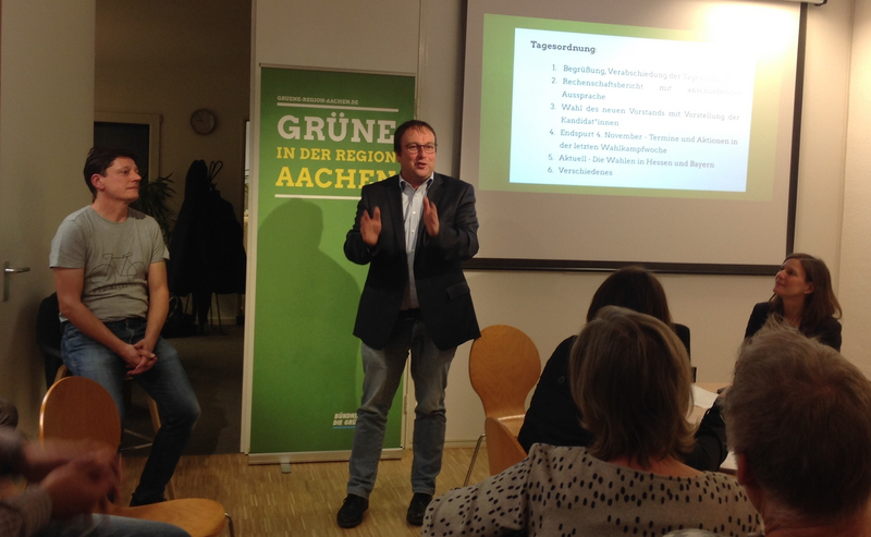 Frischen Wind trug auch Oliver Krischer MdB in die Runde, der zum Endspurt vor der Wahl des Städteregionsrats am 4.11. aufrief. Dem gut gelaunten Dürener merkte man auch nach terminlich prall gefüllten Wahlkampfwochen seine hohe Motivation und die Lust am Politik-machen nach wie vor deutlich an.
