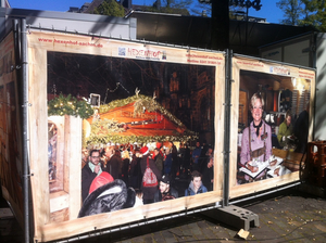 Doch bei all dem „Büdchen zimmern“ und dem Errichten von Bühnen und Ständen passiert es leider immer wieder, dass die Aufbauten wichtige Sichtachsen auf die Gebäude des Weltkulturerbes verstellen. Und vor dem Eingang zum Centre Charlemagne, dem „Neuen Stadtmuseum Aachen“, touristischer Hotspot und Hauptelement der Route Charlemagne, entsteht so regelmäßig eine schäbige „Hinterhofsituation“ mit Mülltonnen, Verpackungsmaterial, Getränkelager und Kühltruhen.
