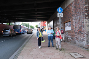 Bei einem Pressetermin vor Ort haben Silke Bergs (Fraktionssprecherin in Eilendorf), Melanie Penalosa (BV Aachen Mitte) und Dorothee von Eckhardtstein (BV Brand) zusammen mit Anne Stockmeyer und Anja König vom ADFC Eilendorf der Presse die Situation im Berufsverkehr erläutert.