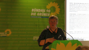 Zu Beginn ihrer Rede blickte die OB-Kandidatin der GRÜNEN, Gisela Nacken, zurück auf 30 Jahre erfolgreiche Kommunalpolitik und nahm die Parteimitglieder mit auf eine kleine Reise durch die Aachener Innenstadt. Sie ging auf die aus ihrer Sicht sehr positive Entwicklung der Stadt in den letzten beiden Ratsperioden ein und verdeutlichte dies anhand der Umgestaltungen vom Bahnhofsvorplatz über den Elisengarten und die Rathaustreppe bis zum Templergraben. Die Stadt und ihre Bürgerinnen und Bürger, aber auch der Tourismus profitiere von diesen Maßnahmen und der Fertigstellung der Route Charlemagne insgesamt.