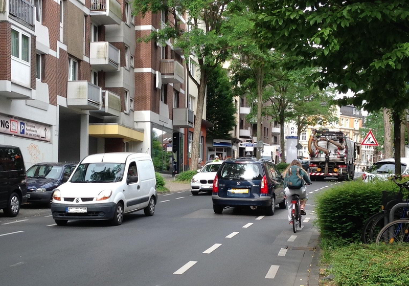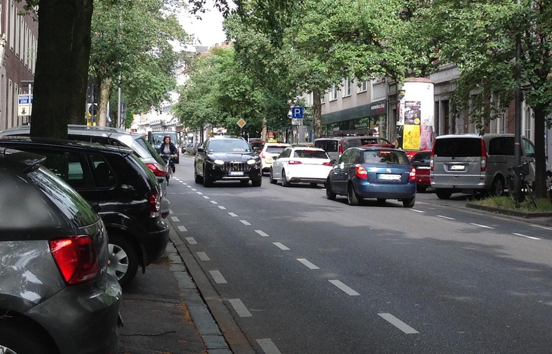 Besonders das Schrägparken wie vor dem Alexianerkrankenhaus führt bei Radfahrenden immer wieder zu notwendigen, aber sehr gefährlichen Ausweichmanövern.