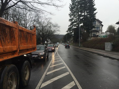 Einfache Maßnahme mit guter und sofortiger Wirkung umsetzbar. GRÜNE fordern Fahrbahnmarkierung in Ratsantrag.