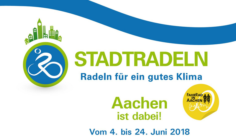 Die Stadt Aachen nimmt vom 04. Juni bis 24. Juni 2018 wieder an der bundesweiten Aktion STADTRADELN teil. Alle, die in der Stadt Aachen wohnen, arbeiten, einem Verein angehören oder eine (Hoch-)Schule besuchen, können beim STADTRADELN mitmachen.