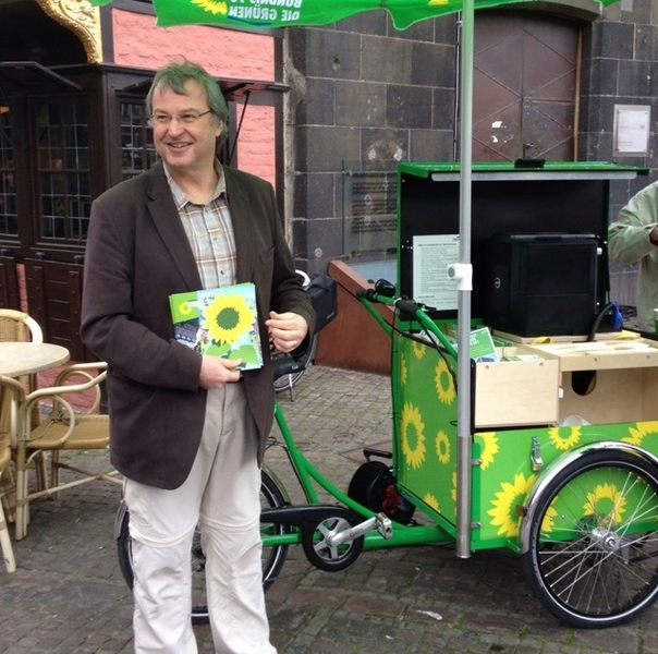 Mit unserem neuen, grünen Lastenfahrrad sind wir in Aachen auf Wahlkampftour. Sie treffen uns auf verschiedenen Wochenmärkten und bei Veranstaltungen; es gibt Kaffee und gute Gespräche.
