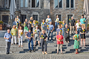 An der Sitzung nahmen auch die neuen Ratsmitglieder teil, die sich zu einem ersten Austausch trafen. Die obligatorischen Sonnenblumen durften an diesem Tage zur Begrüßung und natürlich auch für die Abschiednehmenden nicht fehlen.