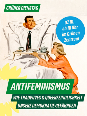 Grüner Dienstag: Antifeminismus der Neuen Rechten. - Wie #tradwives und Queerfeindlichkeit unsere Demokratie gefährden.