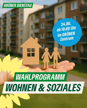 Wir laden Dich herzlich zum nächsten Grünen Dienstag, am 24.06.2025 um 18.00 Uhr ins GRÜNE Zentrum (Franzstr. 34) ein!